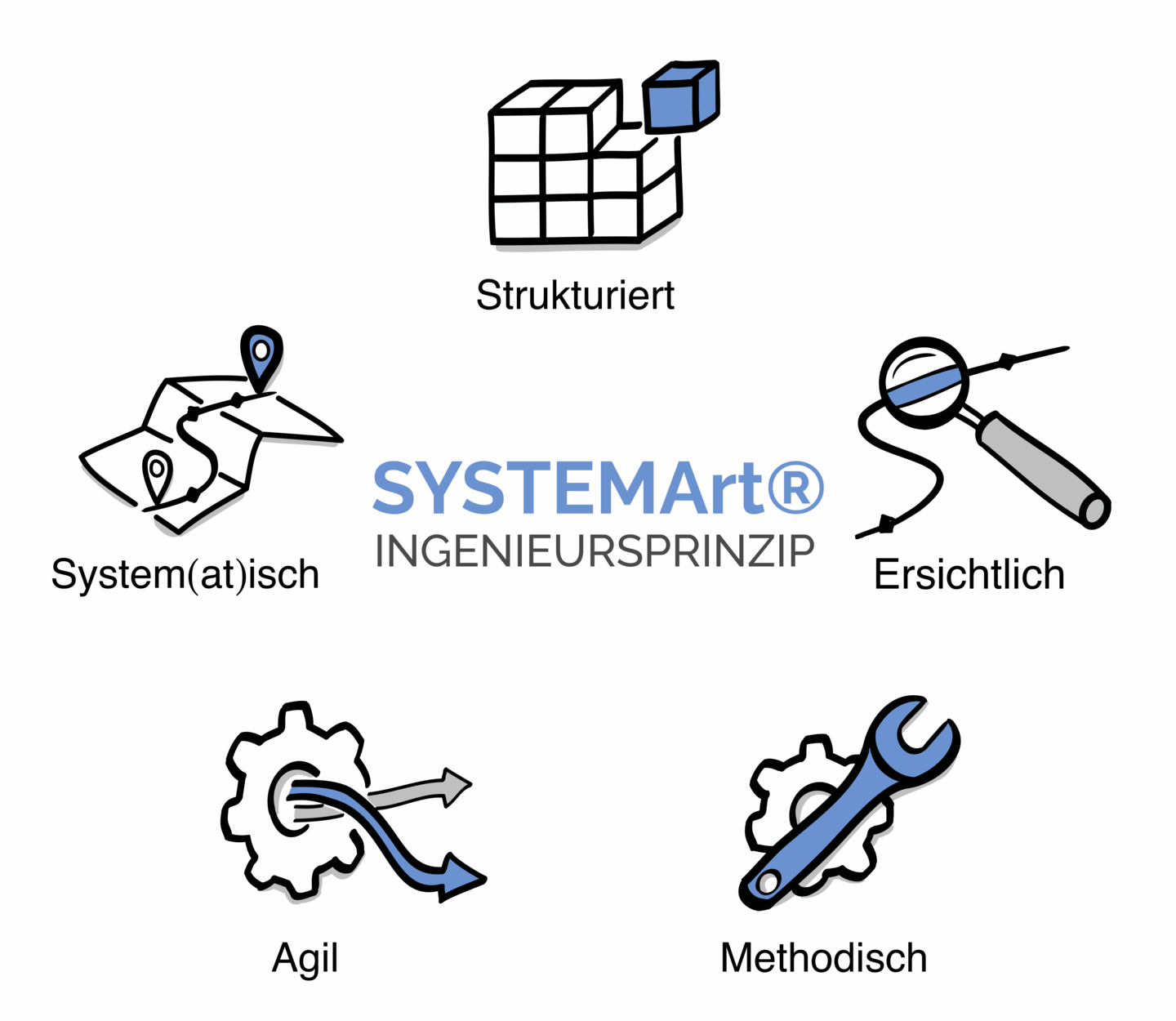 SYSTEMArt® bringt die essenziellen Aspekte des ingenieurmässigen Denkens auf den Punkt – und hilft den Durchblick und Handlungsfähigkeit zu behalten.
