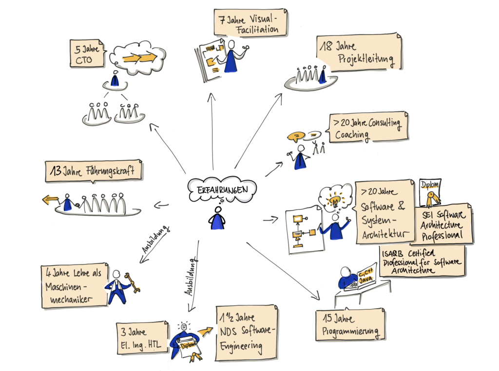 Mein Weg: vom Maschinenmechaniker über die Programmierung bis zur Führung als CTO. Heute bringe ich Erfahrung aus Architektur, Projektleitung, Führung, Coaching und Visual Facilitation zusammen – für Klarheit statt Blindflug.
