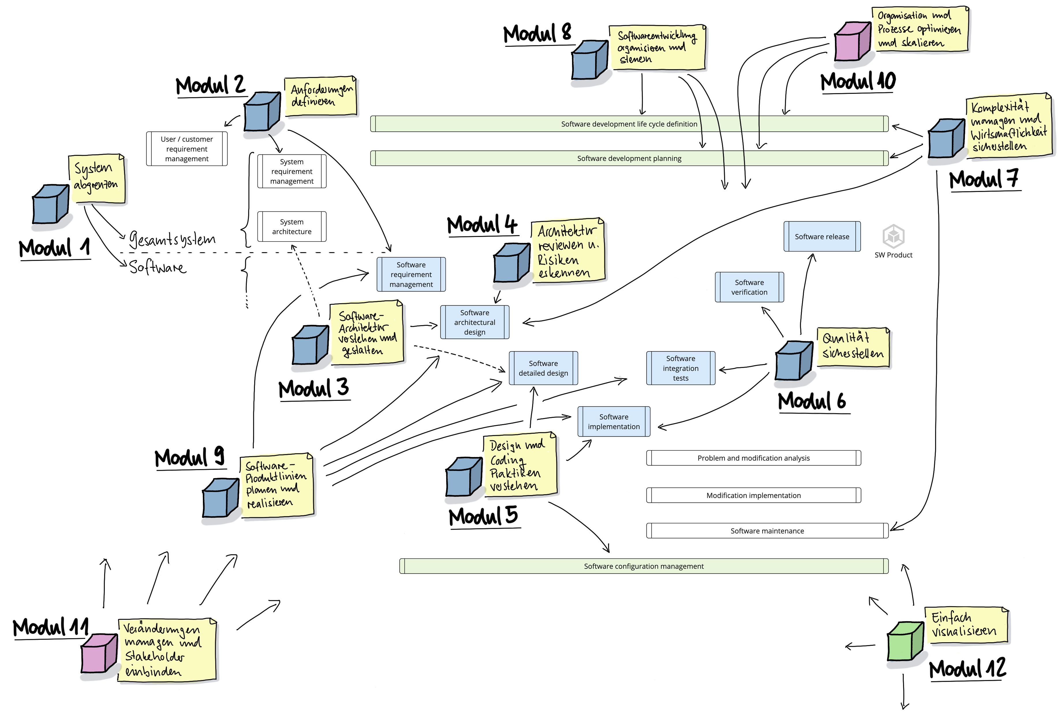 Jedes Modul stärkt Dein Verständnis für Zusammenhänge, Risiken und systematische Entscheidungsfindung – damit Du Deine Rolle als vorausschauender Navigator in komplexen Softwareentwicklungen wirksam ausfüllen kannst.